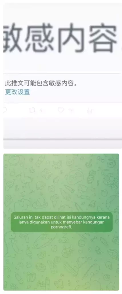 如果大家在用X(原twitter)和Telegram时发现以下情况,可以使用本方法来解除限制