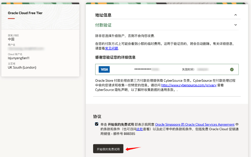 添加“付款验证方式”,我用的是国内招商全币种Visa卡
